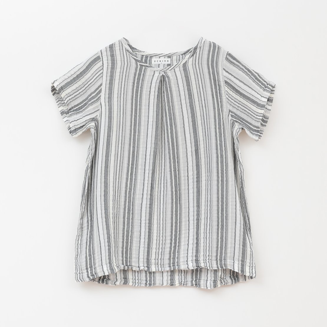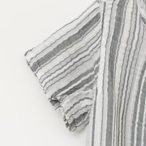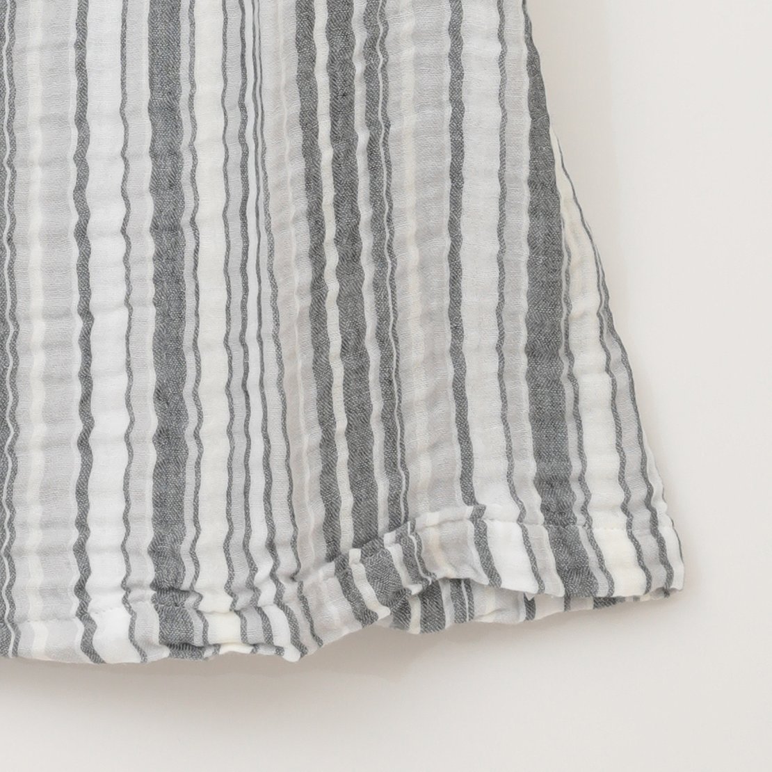 This three-ply gauze has a pleasantly light feel with natural shrinkage and wrinkles. In addition to being light and breathable, the unevenness of the fabric means that the area in contact with the skin is small, making it light and comfortable to wear. The simple design makes it suitable not only for use in the room but also for outside wear. It is also lightweight and folds easily, making it convenient to carry on trips.