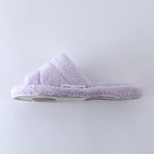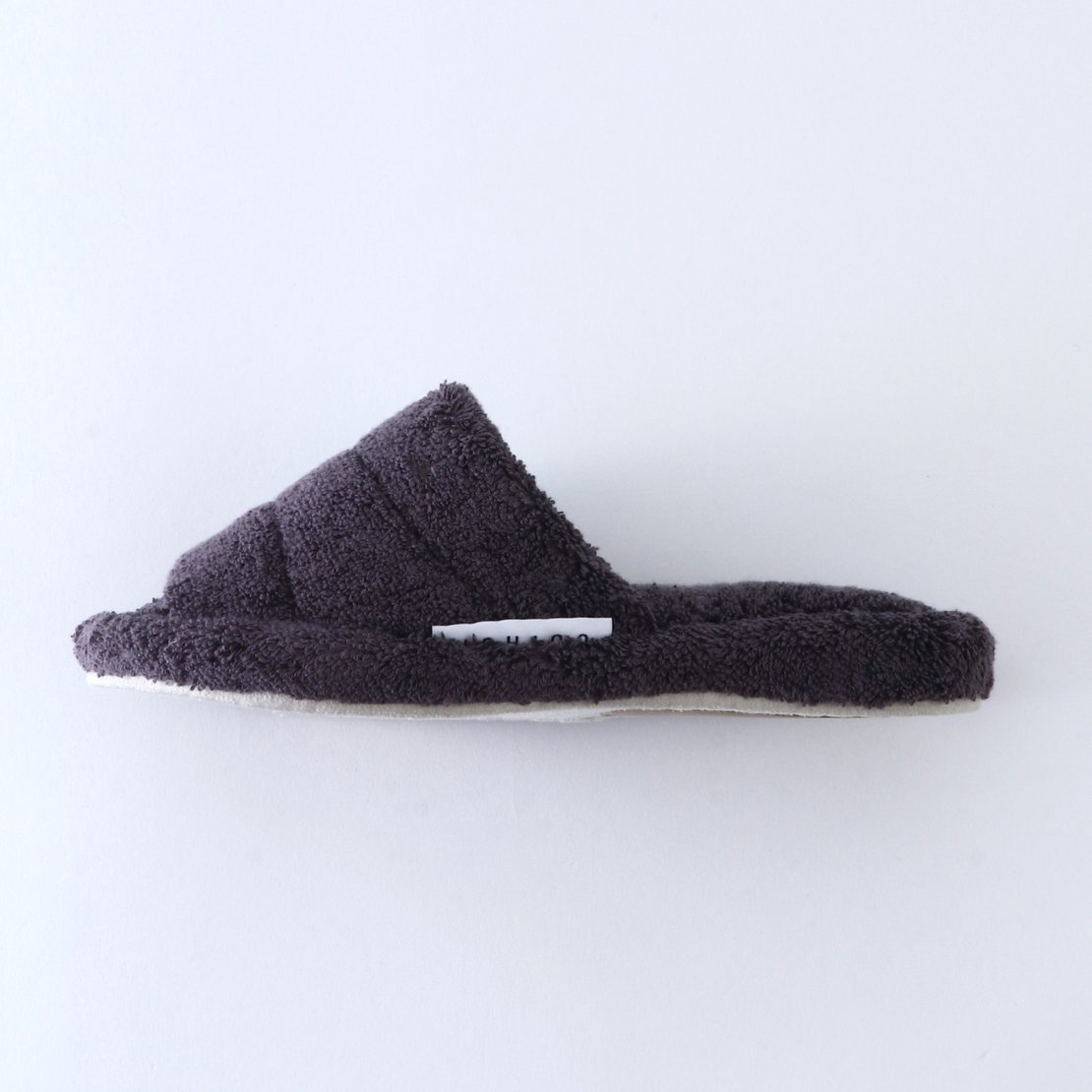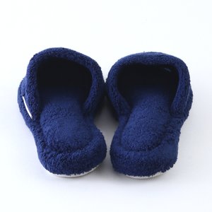 It is made of voluminous towel fabric that feels comfortable on bare feet. Since it is not a thong type, you can wear it even with socks on. The shoes are made of terry cloth and have a thick, sturdy heel that makes walking quieter.