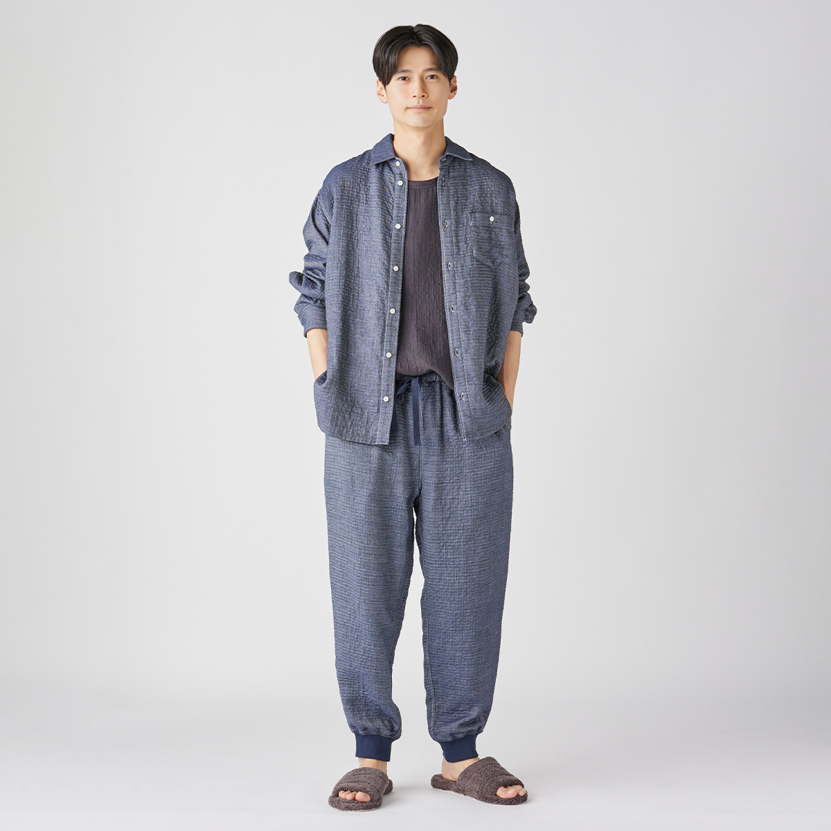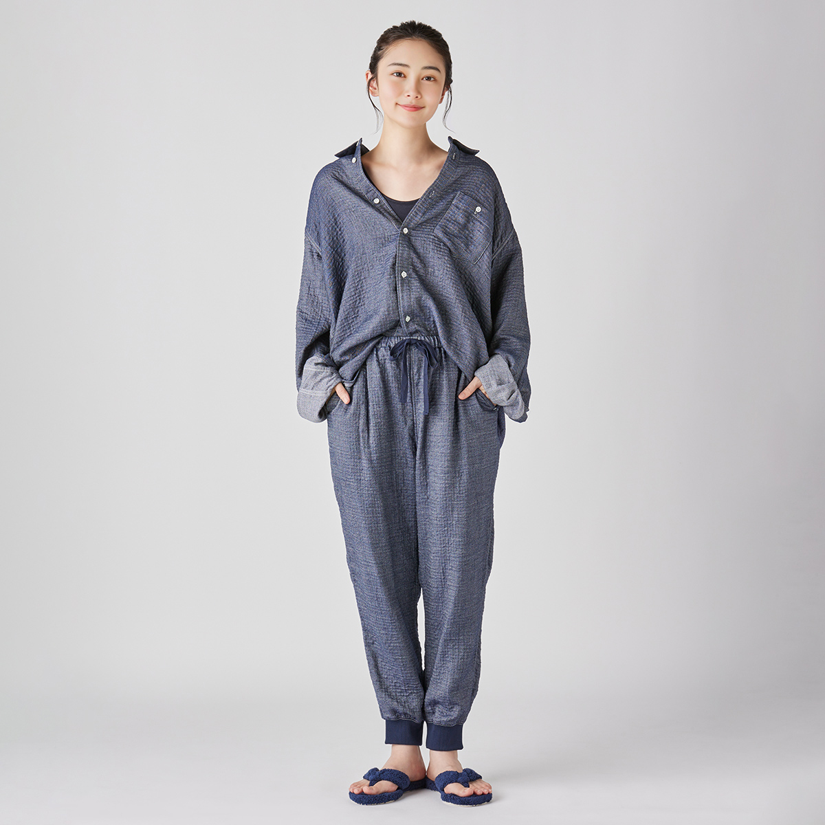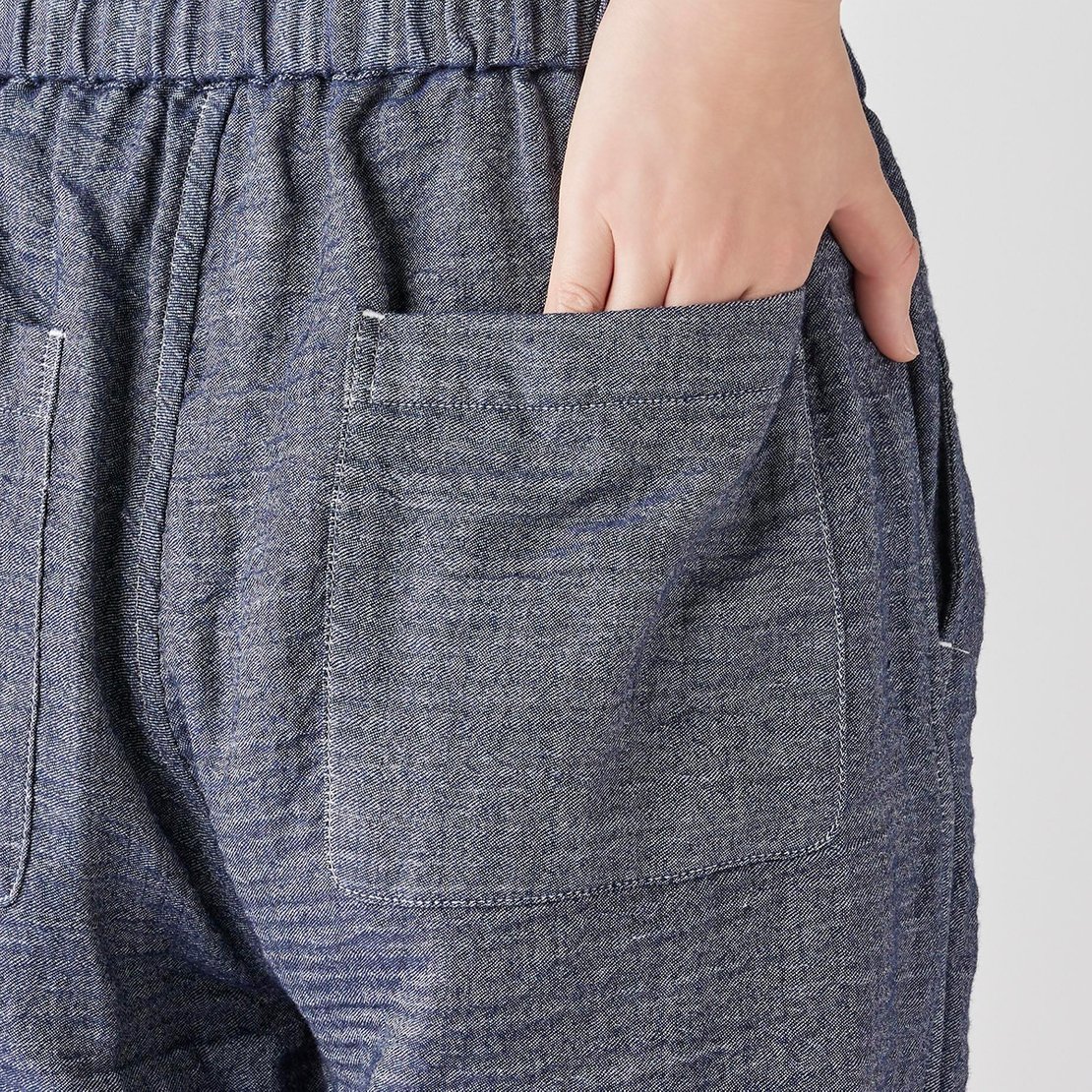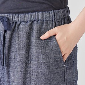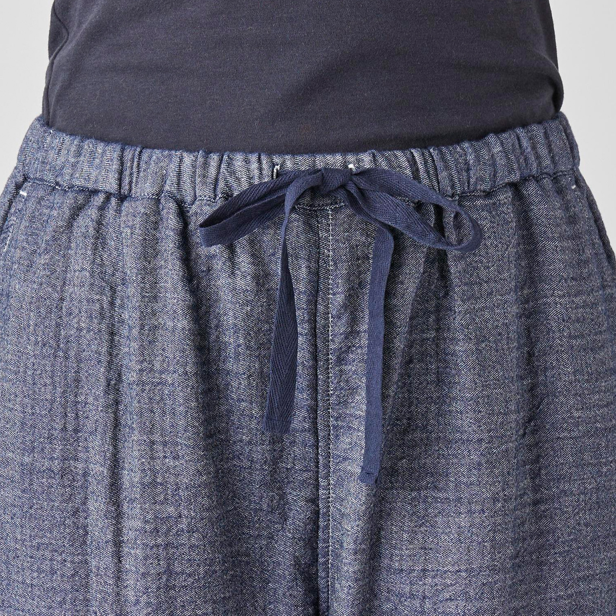 This triple-woven gauze material uses low-twist yarns on the front and back that feel soft against the skin, with a denim-like twill weave on the front and soft gauze on the back.